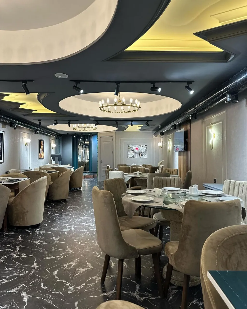 Azərbaycan və Avropa mətbəxi. Banket zalı korporativ və tədbirlər üçün. VIP otaqlar. Həftə sonları canlı musiqi. Onlayn stolların bronu.
